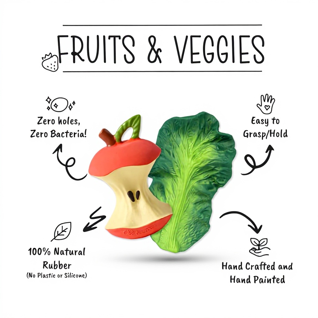 L’anneau de dentition Clementino d’Oli & Carol est conçu en caoutchouc 100% naturel pour soulager en douceur les poussées dentaires de bébé. Sans BPA ni phtalates, il offre une solution sûre et écologique. Son design fruité et sa fabrication artisanale en font un cadeau idéal pour les nouveau-nés jusqu’à 1 an.