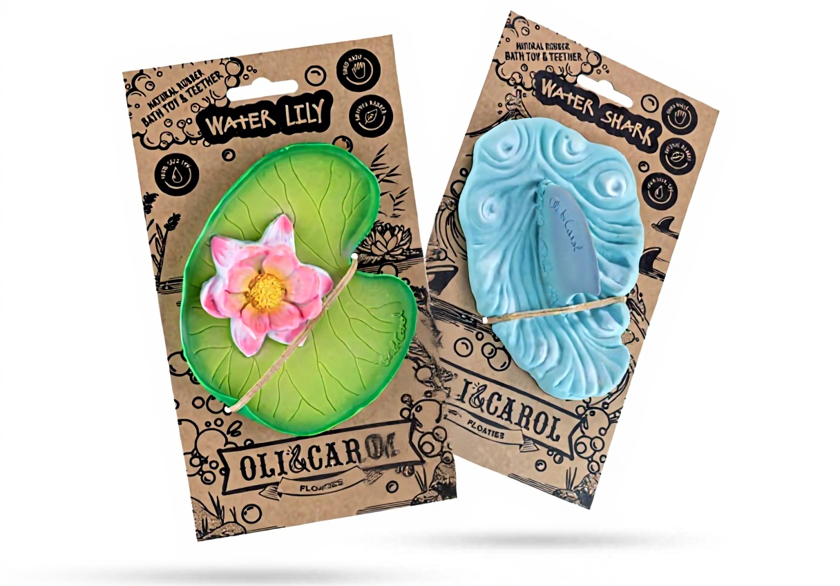 Le jouet de bain Nénuphar Oli & Carol est fabriqué en caoutchouc 100% naturel, sans produits chimiques nocifs. Doux et facile à saisir, il accompagne bébé pendant le bain, la dentition et l’éveil sensoriel. Chaque pièce est unique, peinte à la main avec des pigments naturels pour une expérience de jeu sûre et écologique.