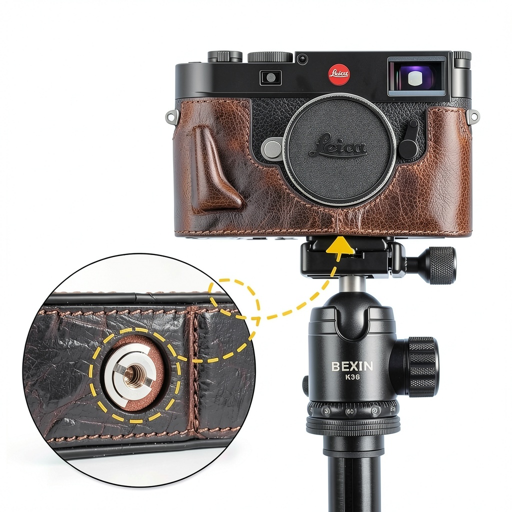 Le filetage 1/4″ intégré sur le dessous de l’étui permet de visser directement le trépied, offrant une stabilité optimale pour vos prises de vue.