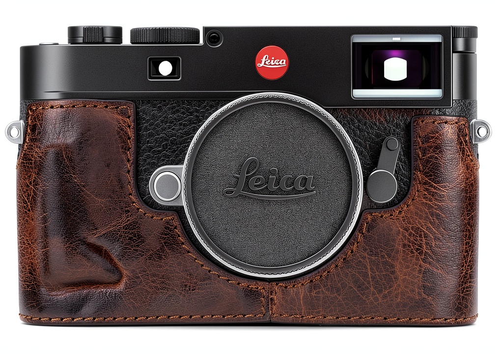 Housse demi-étui en cuir véritable pour Leica M11, M11-P et M-EV1. Protection optimale, prise en main ergonomique et filetage intégré pour trépied. Design