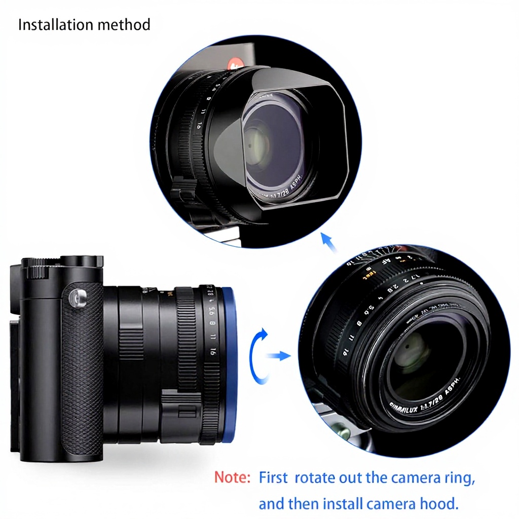 L’installation est simple : alignez le pare-soleil avec la baïonnette de l’objectif de votre Leica et tournez-le légèrement jusqu’à ce qu’il se verrouille en place. Assurez-vous qu’il est bien fixé avant utilisation.