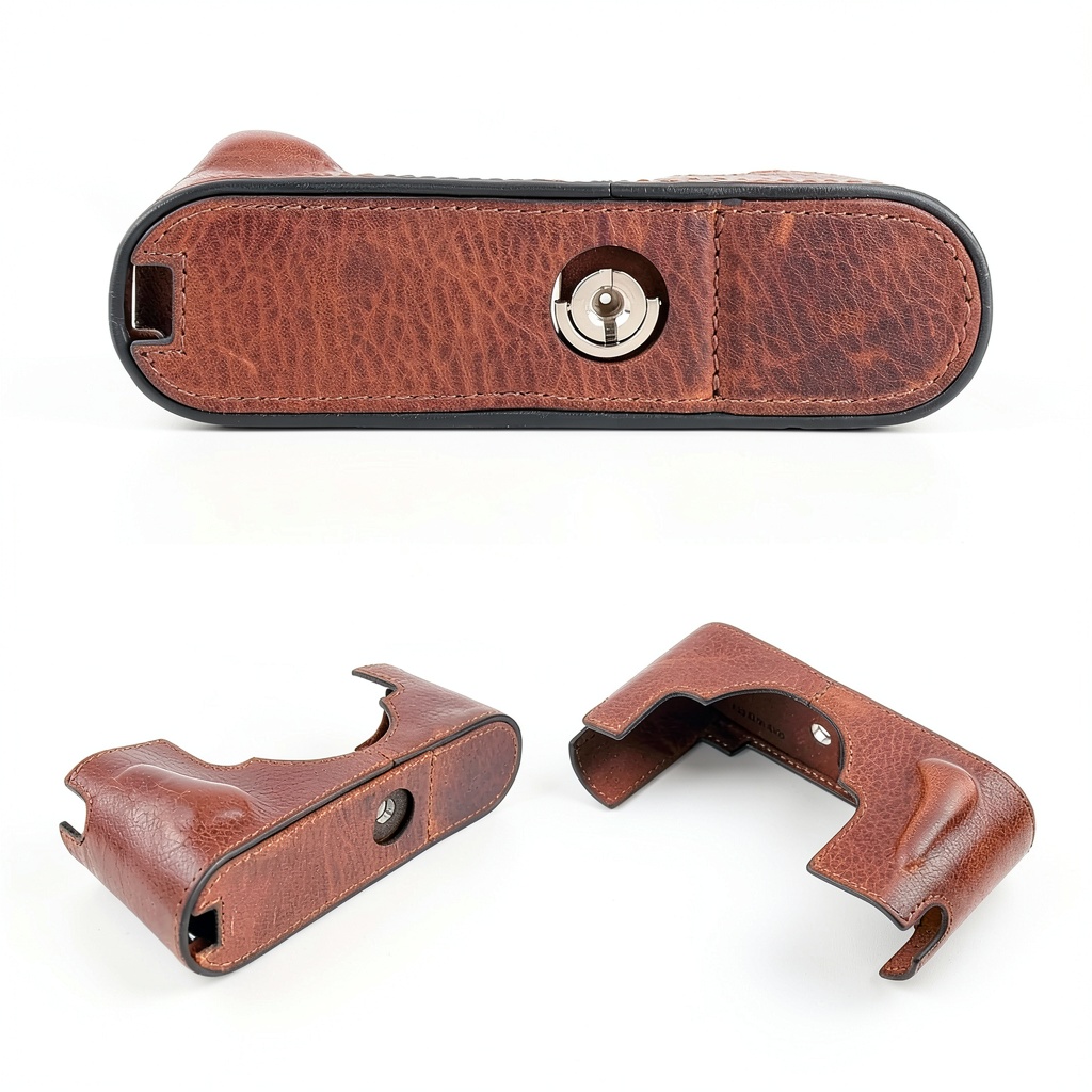 La housse MUZIRI KINOKOO est spécialement conçue pour les appareils photo Leica M11, M11-P et M-EV1. Fabriquée en cuir véritable de première qualité, cette demi-étui offre une protection supérieure contre les chocs, les rayures et l’usure quotidienne. Son design sur mesure épouse parfaitement les courbes de l’appareil tout en préservant l’accès à l’écran rabattable, aux boutons de commande et au compartiment batterie. Les dimensions compactes (15,4 x 14,9 x 7,1 cm) et le poids léger (195 g) en font un accessoire discret qui ne alourdit pas votre équipement.