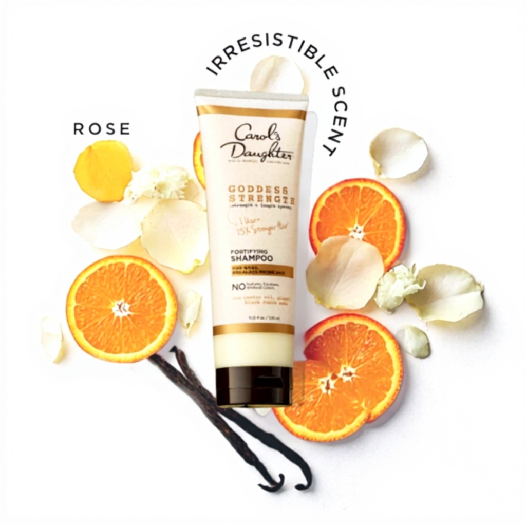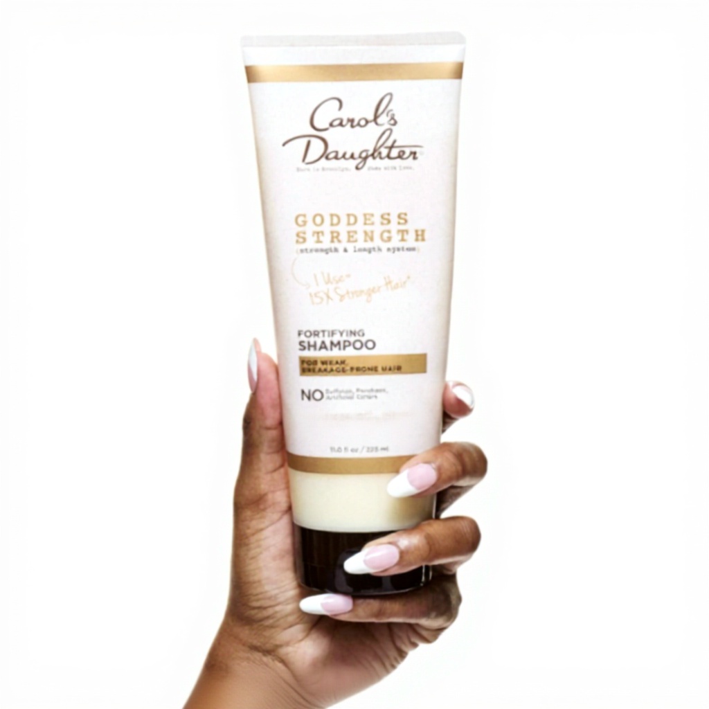 Le shampooing fortifiant Goddess Strength de Carol’s Daughter est conçu pour les cheveux fragiles et cassants. Il associe huile de ricin et graines de nigelle pour nettoyer et renforcer instantanément le cuir chevelu et les longueurs. Parfait pour les boucles frisées et crépus, il favorise des cheveux plus sains et nourris.